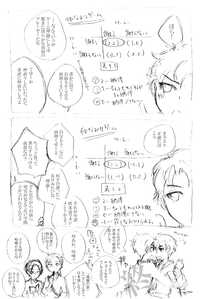ゲーム理論のあれこれは有名な囚人のジレンマかなんかでぐぐると手っ取り早いです。