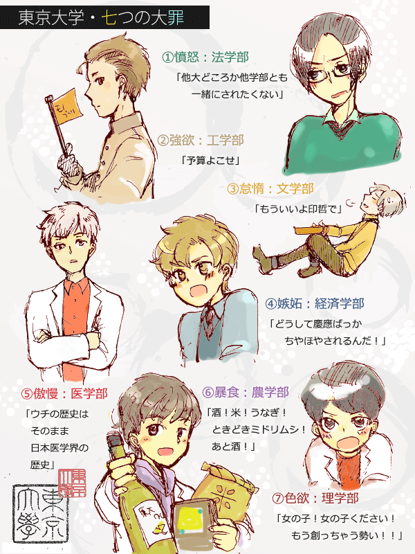 ところで思いついたように東京大学七つの大罪作ってみた。